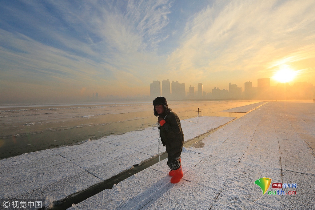 寒冬采冰人:起早贪黑 “淘金”冰雪