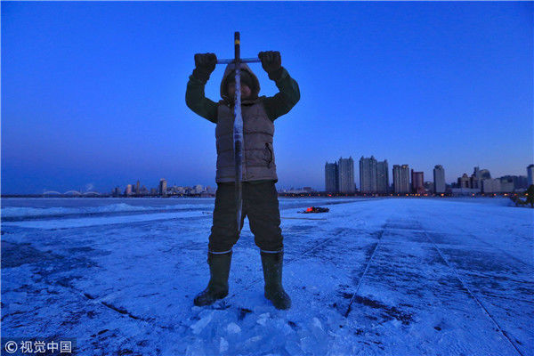 寒冬采冰人:起早贪黑 “淘金”冰雪