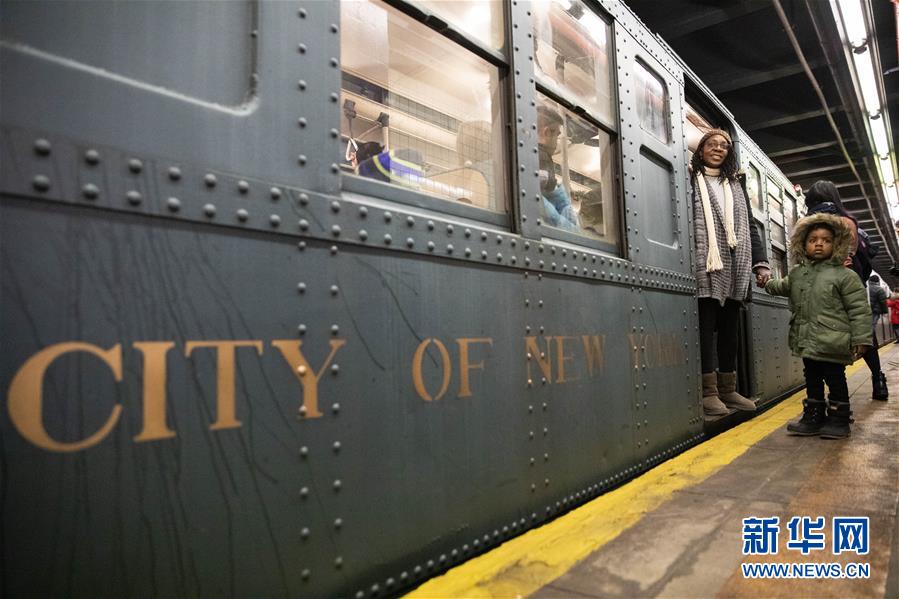 12月8日,在美国纽约,人们搭乘“怀旧专列”。每年感恩节到新年之间的星期日,纽约地铁都会用1932年至1977年间使用的老式列车在运营的线路上开行特别的“怀旧专列”,人们穿戴旧时服饰专程前来搭乘,体验时光回溯的奇妙旅程。新华社记者王迎摄