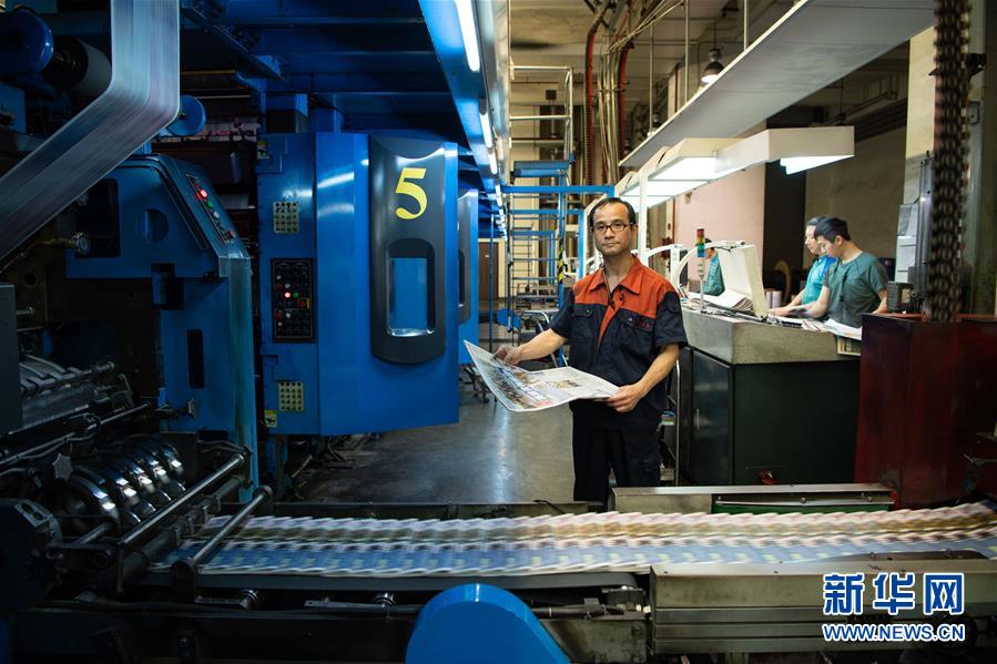 11月27日,澳门日报印刷课副主任袁锦财在车间内,他已经工作了35年,主要负责抽样质检当日报纸。 澳门回归祖国二十年,经济繁荣昌盛,社会面貌生机勃勃。这二十年的辉煌成就,离不开各行各业普通劳动者的辛勤付出。他们默默无闻,日复一日用汗水与坚守为澳门社会贡献自己的力量。 新华社记者 张金加 摄
