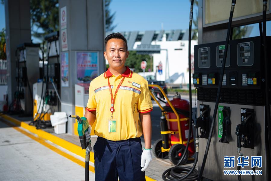 11月25日,澳门南光石油化工有限公司加油员陈健忠在加油站内,他已经工作了3年。 新华社记者 张金加 摄