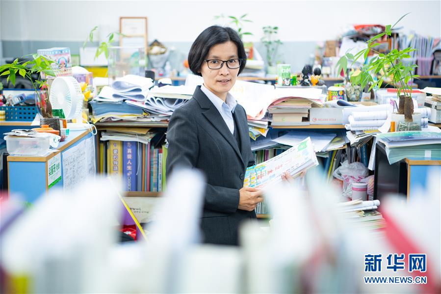 11月26日,澳门培华中学教师袁金淑在办公室内,她已经工作了20年,主要负责数学及公民教育。 新华社记者 张金加 摄