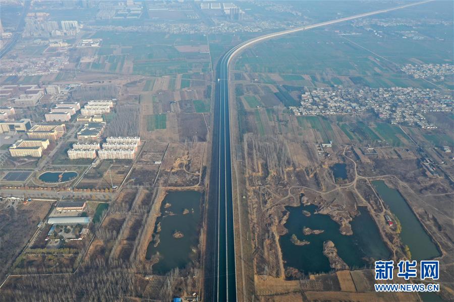 这是12月9日无人机拍摄的南水北调中线总干渠沙河渡槽工程。新华社记者冯大鹏摄