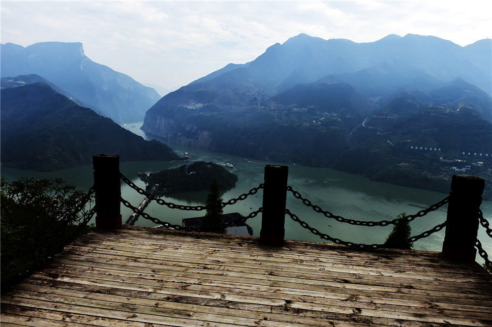 2019年11月3日,重庆,位于鱼腹山悬崖、紫阳城遗址的观景台。
