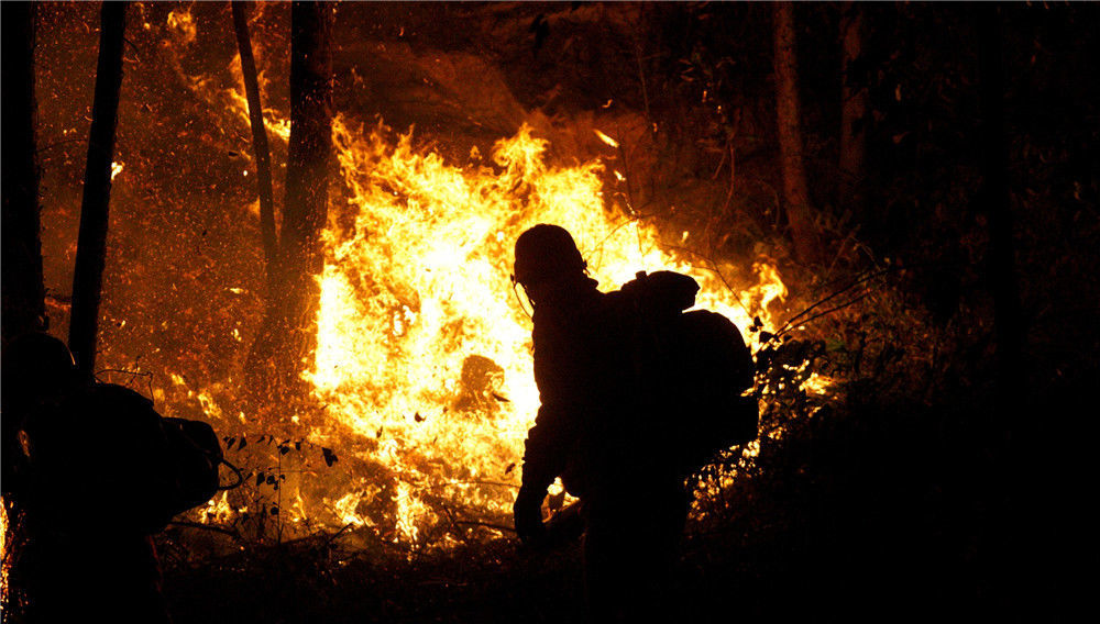 千名救援人员进山筑起“截火带” 广东佛山高明山火已得到控制