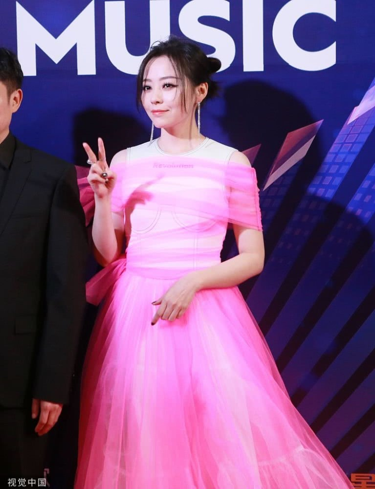 张靓颖一身芭比粉纱裙出席红毯,银色长条耳饰拉伸颈部线条优雅十足。