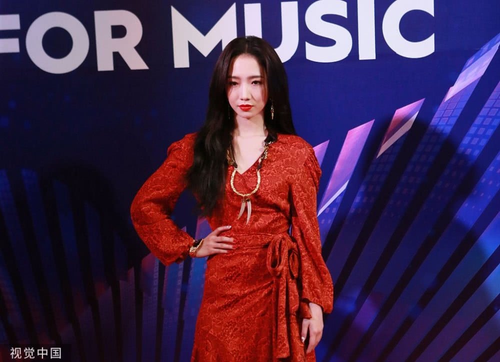 孟美岐身穿大红色长裙搭配波浪卷发,大走港风美艳动人。