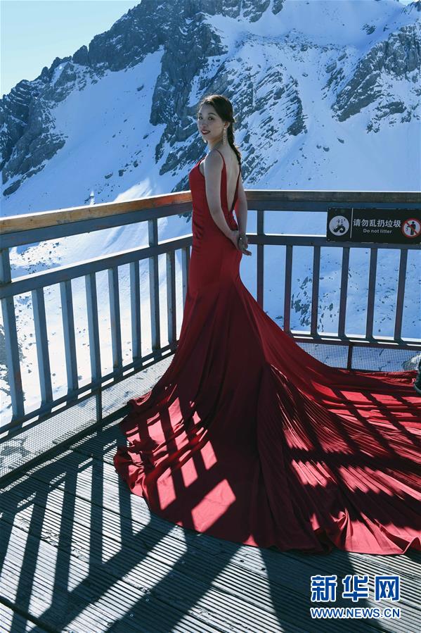 12月10日,游客在玉龙雪山拍照留影。新华社记者杨宗友摄