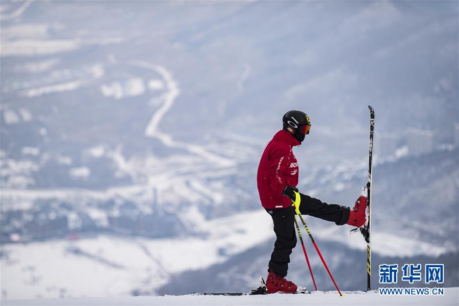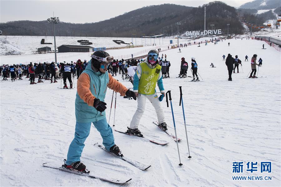 12月13日,滑雪爱好者在吉林市万科松花湖度假区做滑雪前的热身。新华社记者 张豪夫 摄