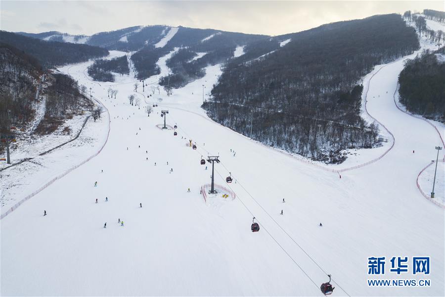 空中俯瞰吉林市万科松花湖度假区滑雪场(12月13日无人机拍摄)。新华社记者 张豪夫 摄