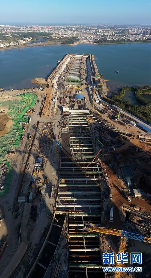 正在施工的海口文明东越江通道项目(12月14日无人机拍摄)。 新华社记者 郭程 摄