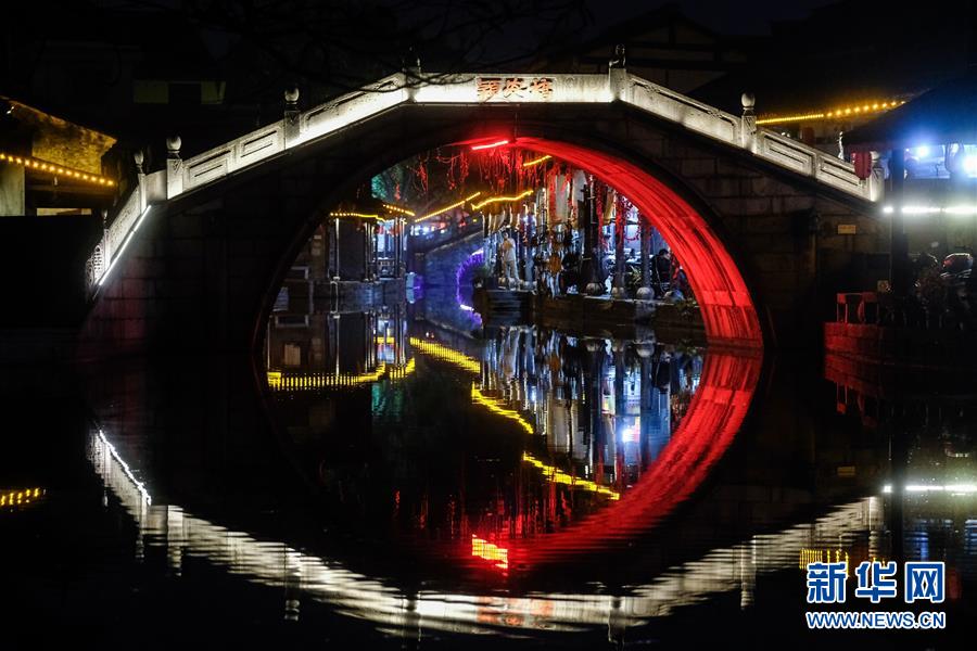 夜色中的安昌古镇(12月11日摄)。新华社记者徐昱摄