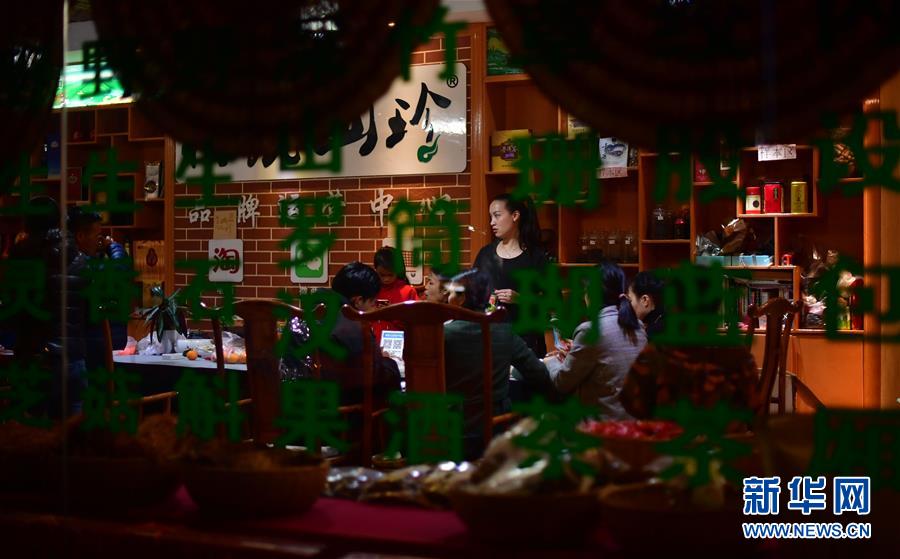 李柳萍和员工在特产馆里工作(12月14日摄)。新华社记者黄孝邦摄