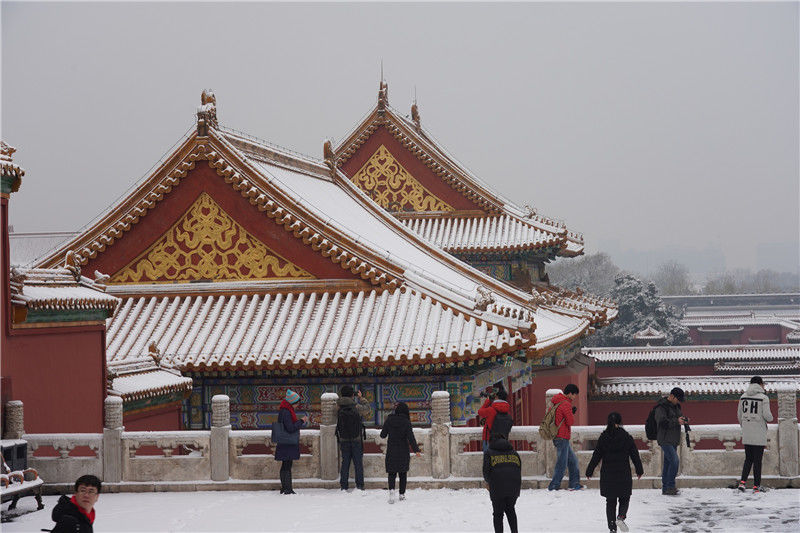 2019年11月30日,北京,初雪过后,故宫美景如画,吸引大批游客前来“打卡”。