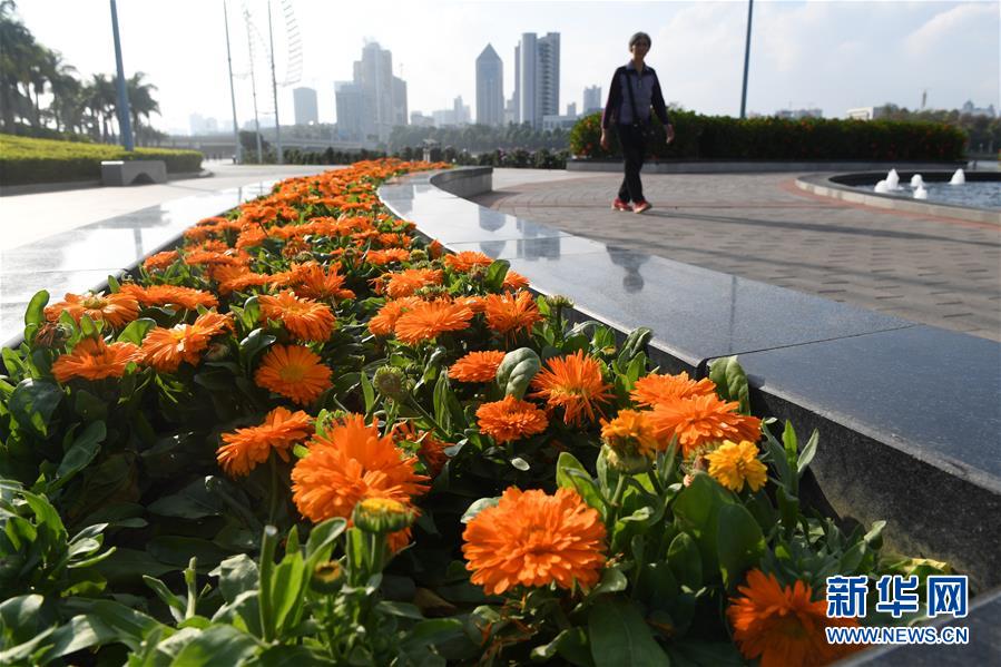 12月17日,市民从南宁市南湖边绿树鲜花间走过。新华社记者 陆波岸 摄