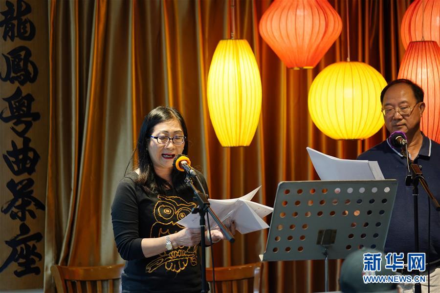 12月17日,在澳门大龙凤茶楼里,曲艺人员表演传统粤曲。新华社记者王申摄