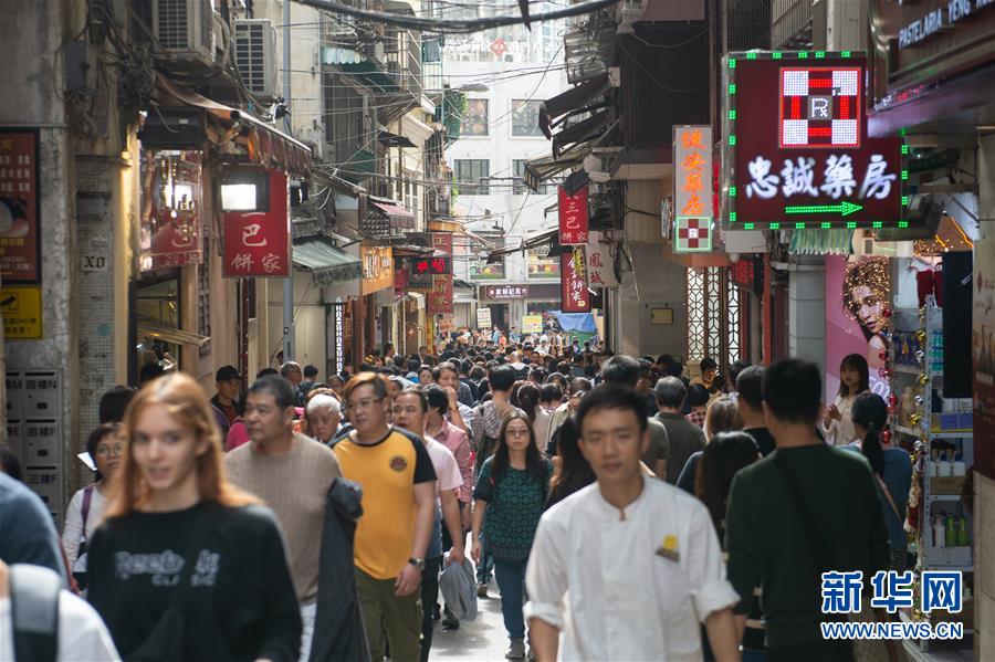 12月17日,澳门大三巴斜巷游人如织。新华社记者杜宇摄