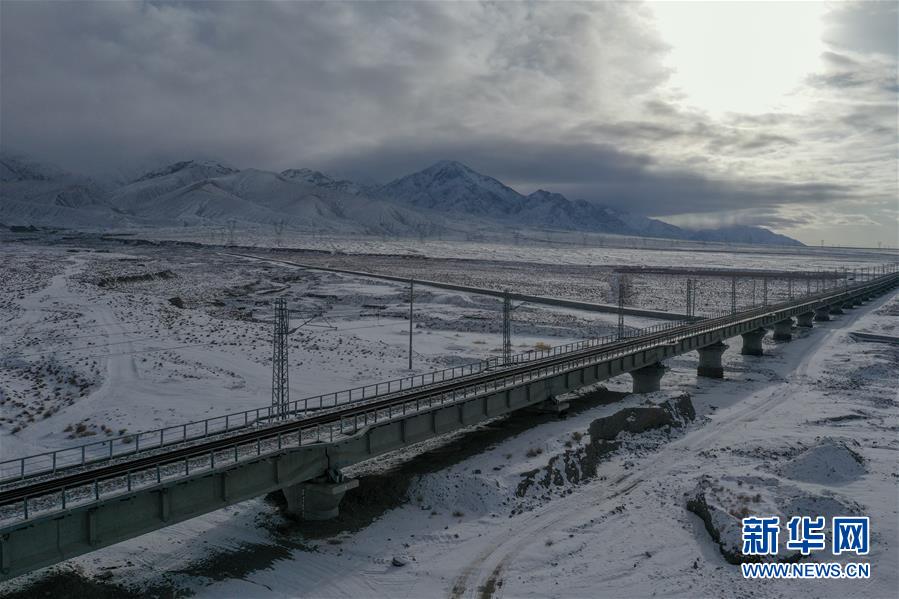 这是12月16日无人机拍摄的敦煌铁路大柴旦站附近的一处铁路桥。新华社记者张龙摄