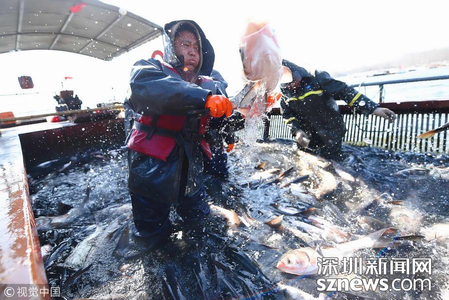 内蒙古雪原上的冬捕