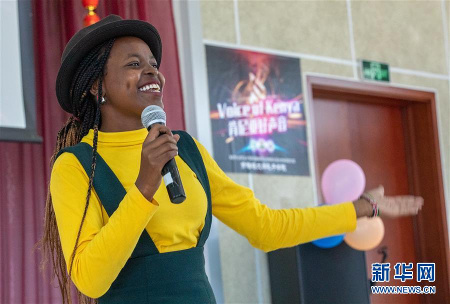 12月18日,在肯尼亚首都内罗毕的肯雅塔大学,参赛选手演唱中文歌曲。