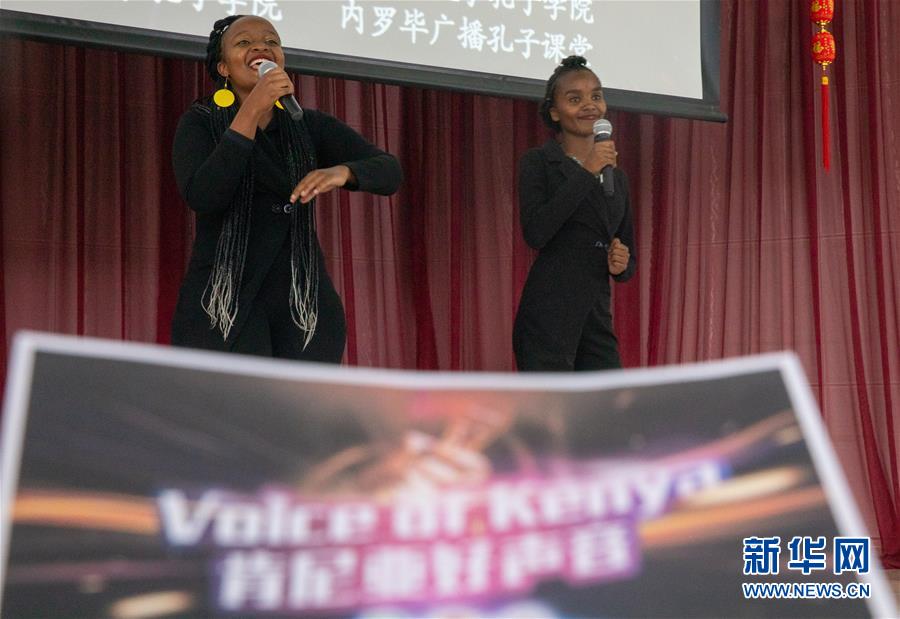 12月18日,在肯尼亚首都内罗毕的肯雅塔大学,参赛选手演唱中文歌曲。 新华社记者 张宇 摄