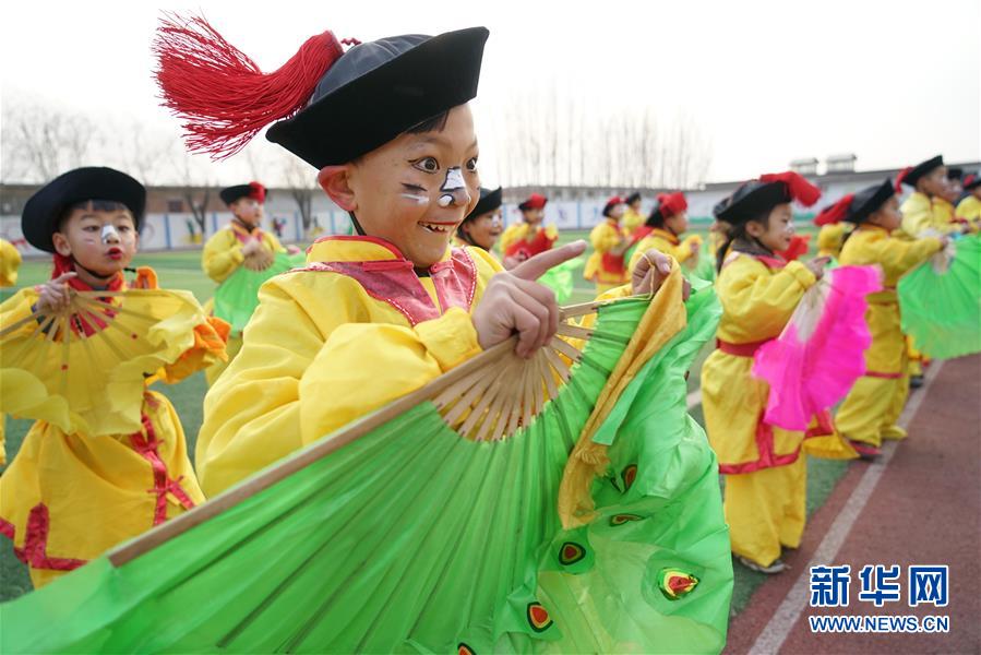 12月19日,河北省滦州市小闫营小学学生在排练地秧歌。新华社记者 牟宇 摄