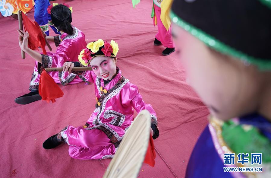 12月19日,河北省滦州市小闫营小学学生在排练地秧歌。新华社记者 牟宇 摄