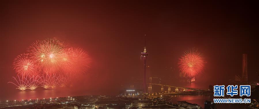 12月22日,烟花在澳门上空绽放。当晚,澳门与珠海首次联合举行烟花汇演,庆祝澳门回归20周年。新华社记者吕小炜摄
