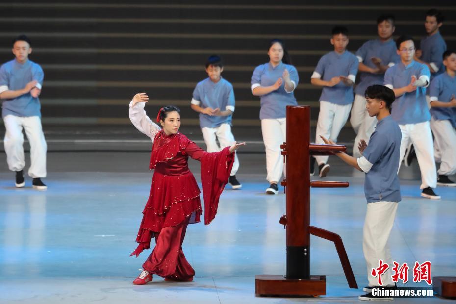 12月19日晚,庆祝澳门回归祖国20周年文艺晚会在澳门东亚运动会体育馆举行。图为功夫诗画《濠江雄风》。中新社记者谢光磊摄