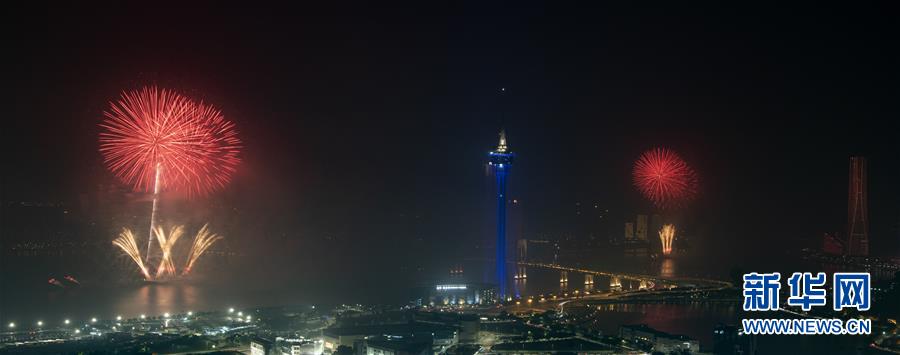 12月22日,烟花在澳门上空绽放。当晚,澳门与珠海首次联合举行烟花汇演,庆祝澳门回归祖国20周年。新华社记者吕小炜摄