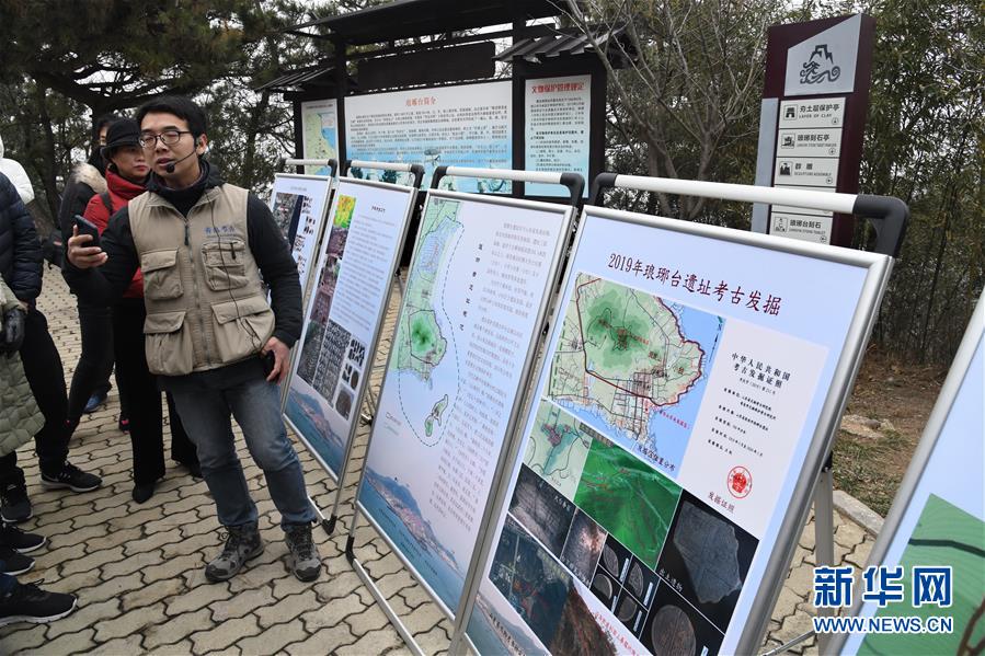 考古队员彭峪在介绍琅琊台遗址考古发掘的进展(12月21日摄)。新华社记者李紫恒摄