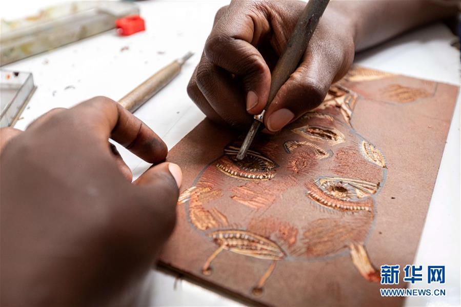 12月20日,在肯尼亚内罗毕库奥纳艺术中心,一名艺术家在工作室内创作作品。 新华社记者 王腾 摄