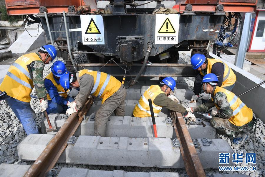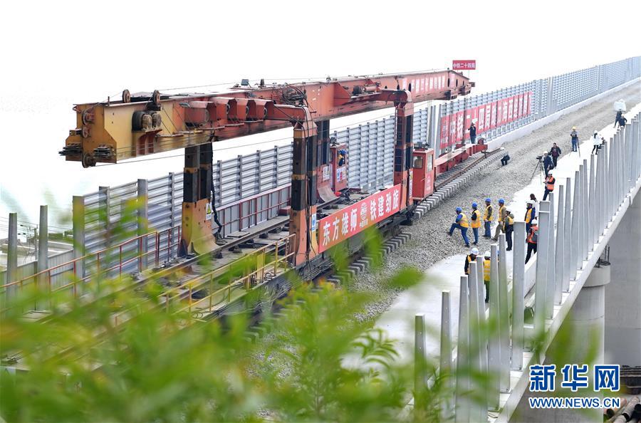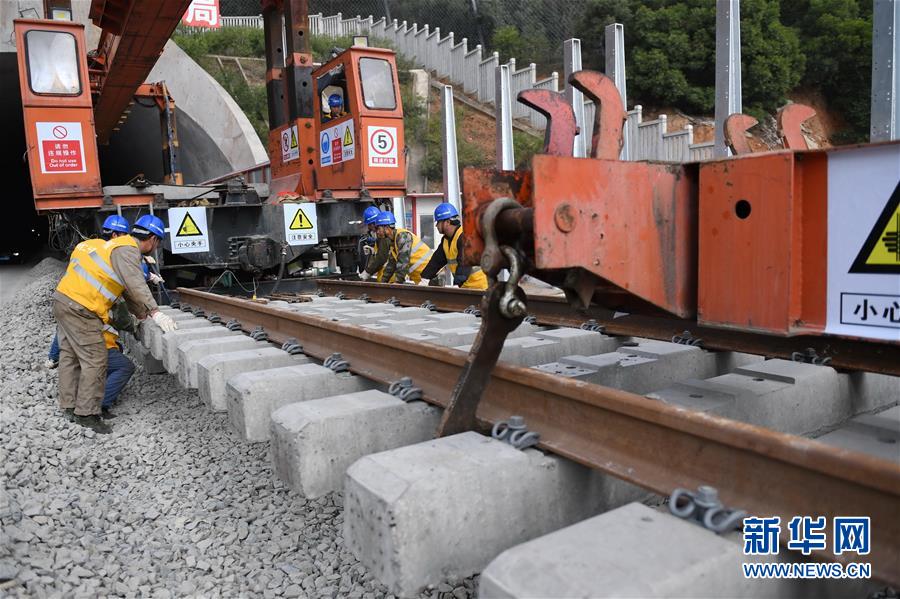 12月22日,中铁二十四局工作人员在平潭海峡公铁大桥铺轨施工现场进行铺轨作业。当日,总长为16.34公里的福平铁路平潭海峡公铁大桥铺轨正式启动。平潭海峡公铁大桥是福州至平潭铁路控制性工程,上层设计为时速100公里的六车道高速公路,下层为设计时速200公里的高铁,大桥计划2020年正式通车。新华社记者林善传摄