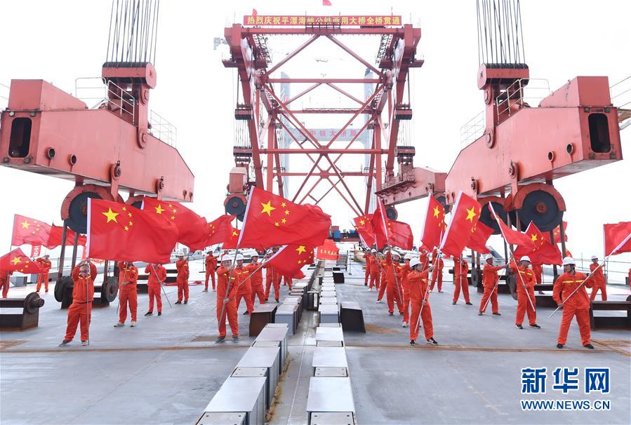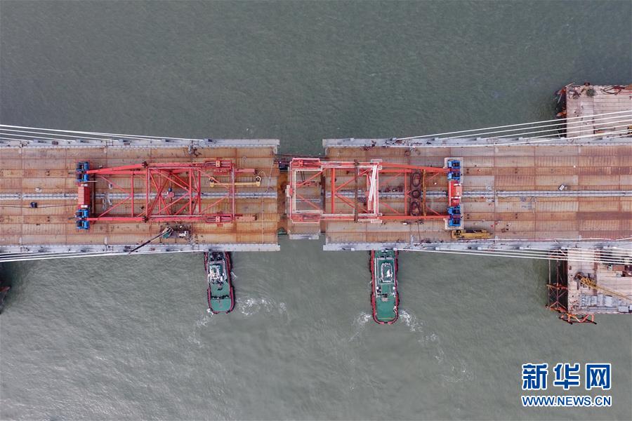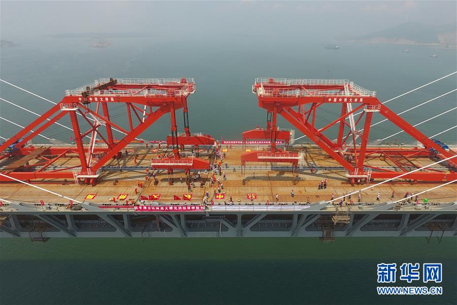 6月5日,福平铁路平潭海峡公铁两用大桥元洪航道桥主桥正式合龙。新华社记者林善传摄