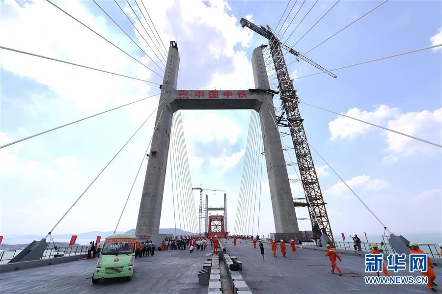 9月25日拍摄的平潭海峡公铁大桥合龙贯通庆祝活动现场。新华社记者林善传摄