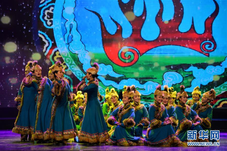 12月22日,演员在表演舞蹈《达斡尔民间呼号表演》。 新华社记者 徐钦 摄