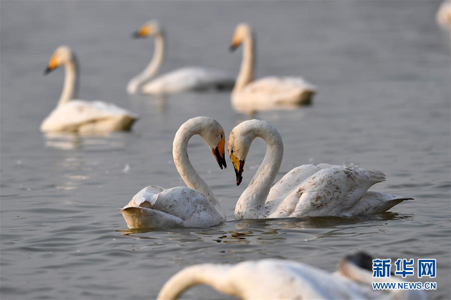 12月13日,白天鹅在山西平陆黄河湿地栖息。 连日来,众多白天鹅飞临山西平陆黄河湿地越冬。 占地6000多公顷的山西平陆黄河湿地位于山西、河南两省交界处,这里气候温和,采食丰富,非常适宜白天鹅越冬。每年秋末冬初,白天鹅都会从遥远的西伯利亚来到这里栖息越冬。 新华社记者 詹彦 摄