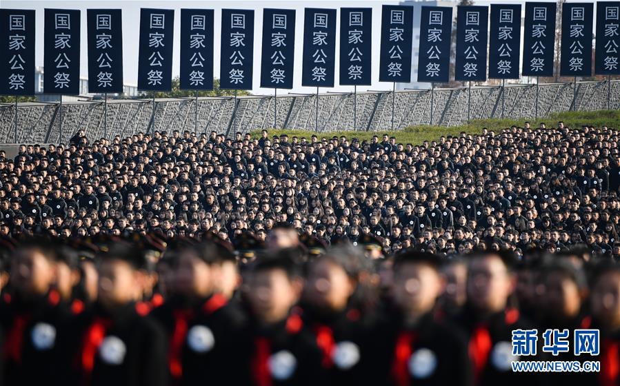 12月13日拍摄的南京大屠杀死难者国家公祭仪式现场。 当日是第六个南京大屠杀死难者国家公祭日,南京大屠杀死难者国家公祭仪式在侵华日军南京大屠杀遇难同胞纪念馆举行。 新华社记者 李响 摄