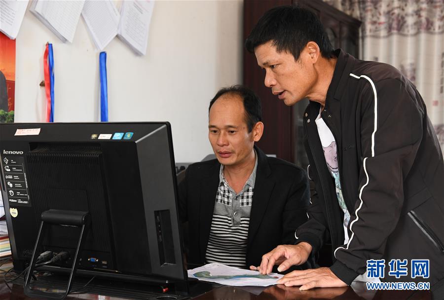海南新盈红树林国家湿地公园巡护员兼监测员罗理想(右)在湿地公园内的办公室里与同事探讨工作(12月10日摄)。 罗理想2006年起开始参与红树林湿地的保护工作,近年来他参加了很多关于湿地的培训。2016年,罗理想在工作中监测到极危鸟种勺嘴鹬,当时有许多媒体做了报道,后来他又配合专家在湿地公园里发现了拉氏红树,“那个时候感觉自己的工作很有价值”,罗理想说。 新华社记者杨冠宇摄