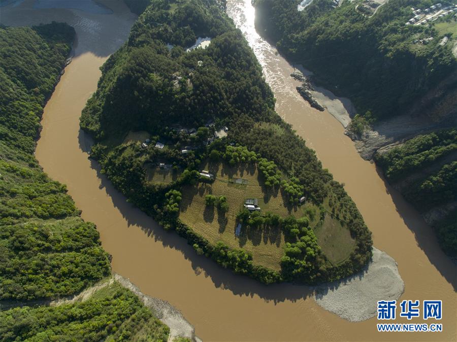 这是4月27日在云南省贡山独龙族怒族自治县丙中洛镇拍摄的“怒江第一湾”(无人机拍摄)。新华社记者江文耀摄