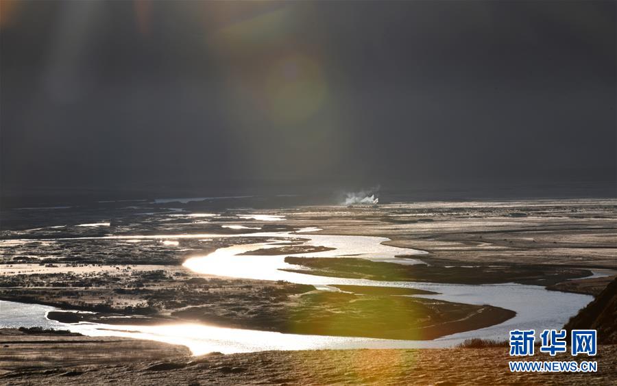 在川藏线四川石渠县境内,朝霞中的民居炊烟袅袅(11月2日摄)。新华社记者陈天湖摄