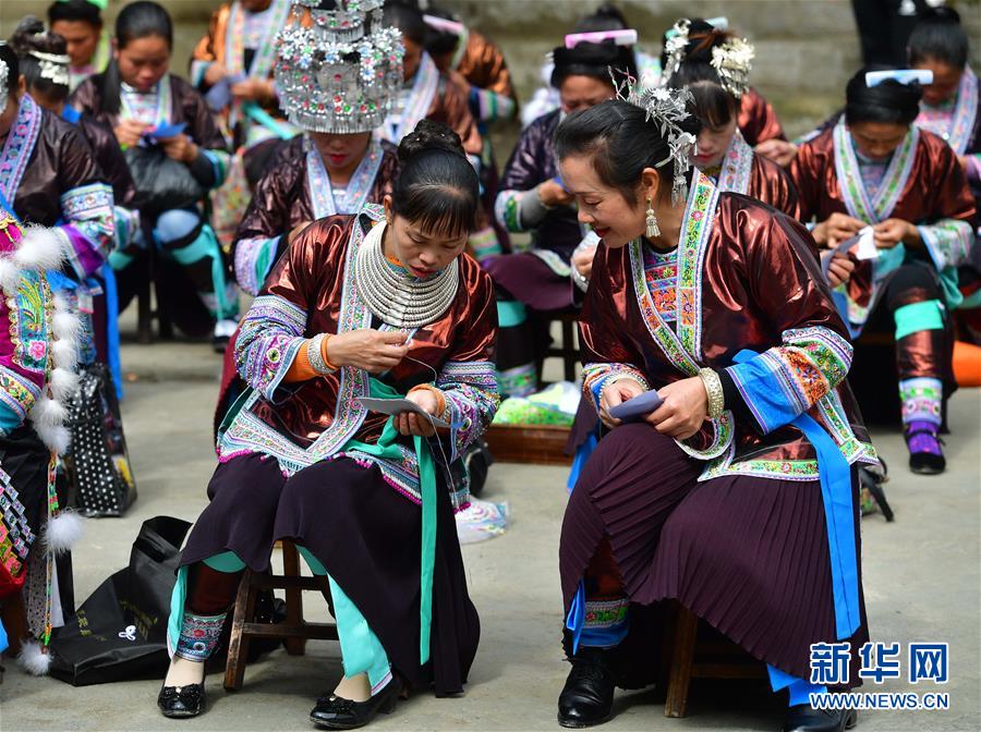妇女在乌英苗寨的培训课上学习刺绣(10月18日摄)。新华社记者黄孝邦摄