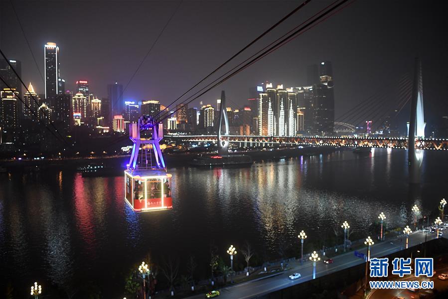 12月23日,“长江索道”在重庆夜空中运行。