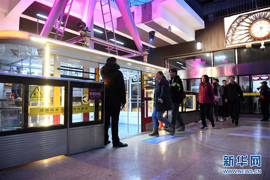 12月23日,前来体验的游客排队进入索道轿厢。新华社记者唐奕摄