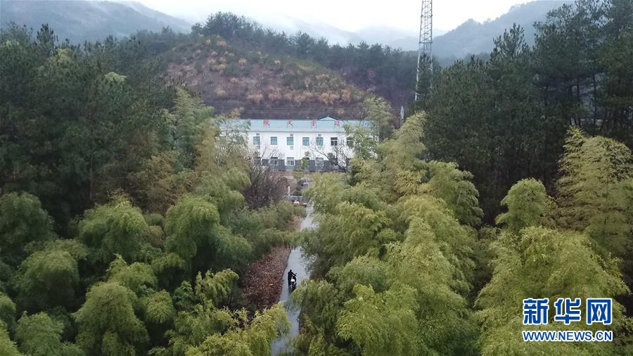 12月18日,常晓龙在巡线结束后回到墩义堂警务室(无人机拍摄)。新华社记者张端摄