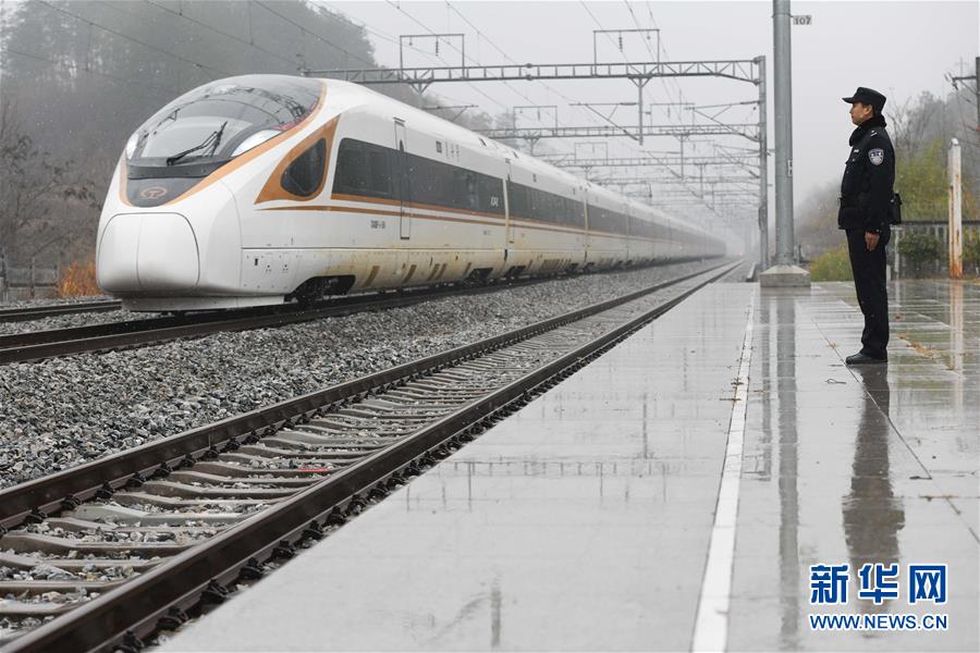 12月18日,常晓龙在墩义堂站接车。新华社记者张端摄