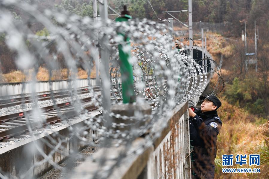 12月18日,常晓龙在排查铁路沿线护栏的安全隐患。新华社记者张端摄