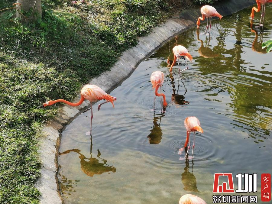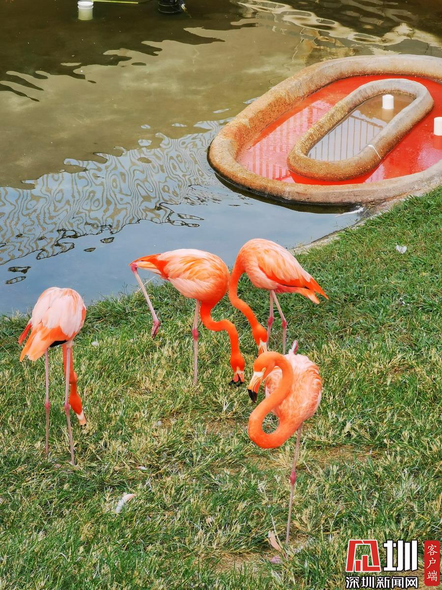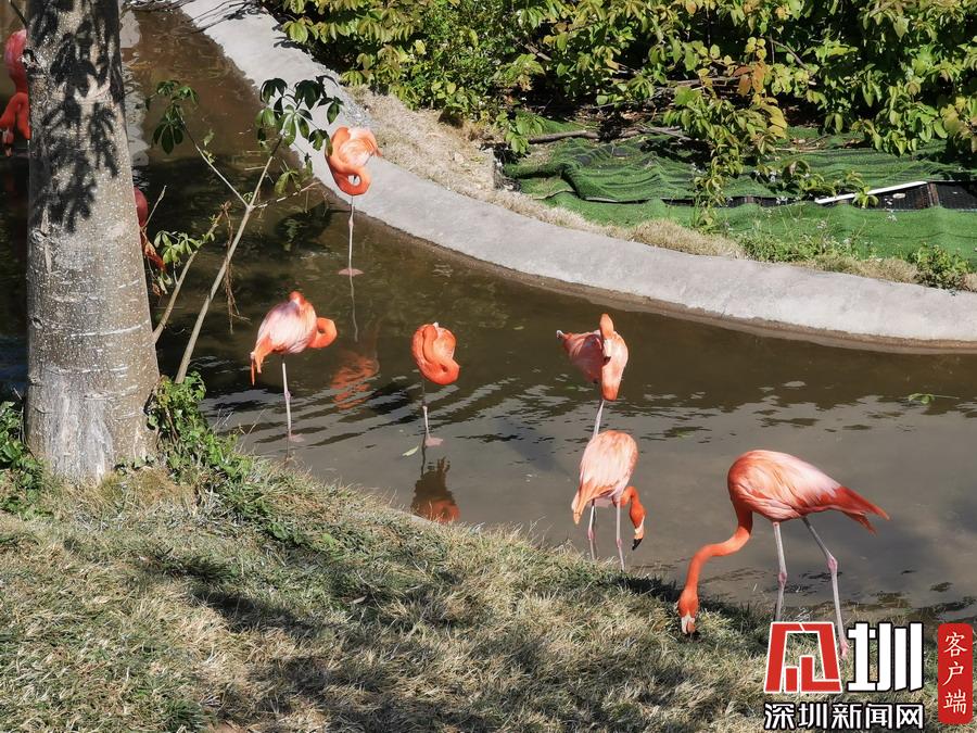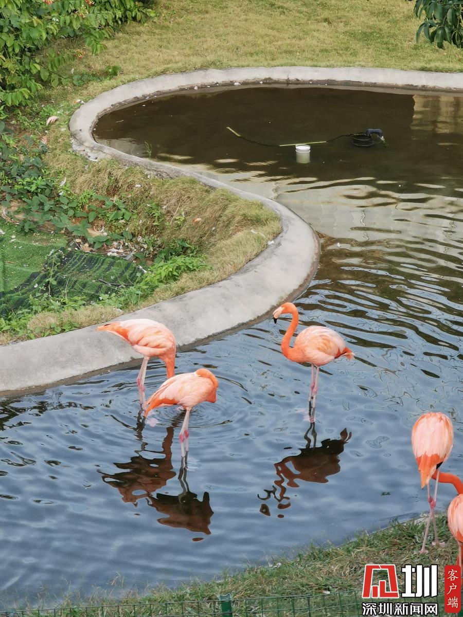 基因库外面有下沉式水塘,一群火烈鸟在这里展示牠们鲜艳的羽毛和精廋的长腿。郑晓鹏摄