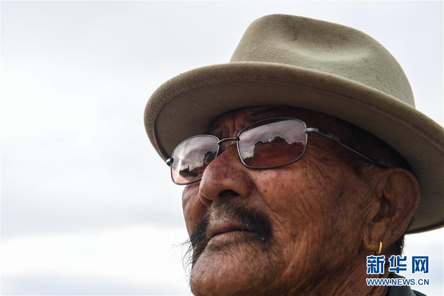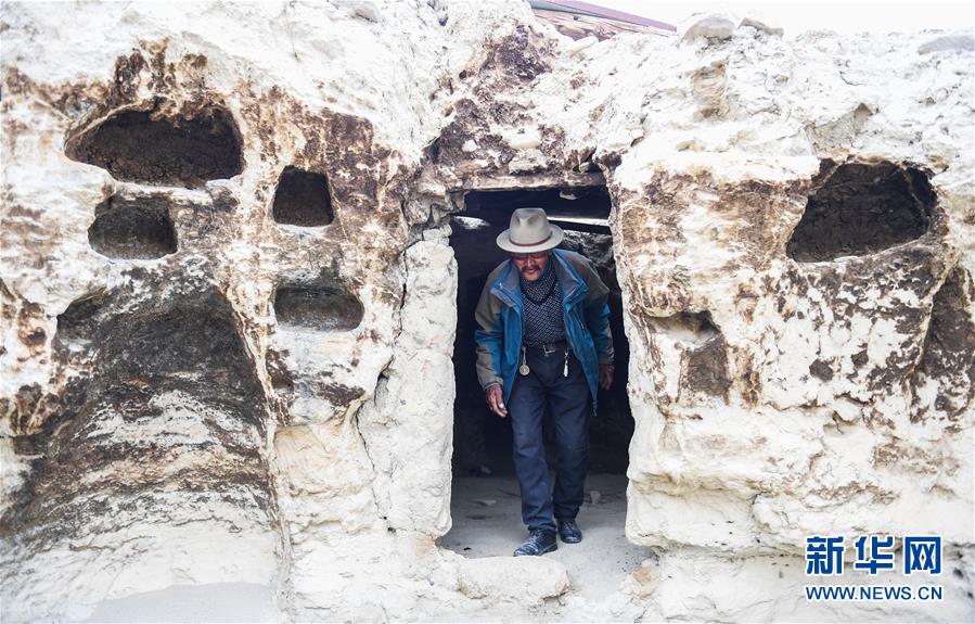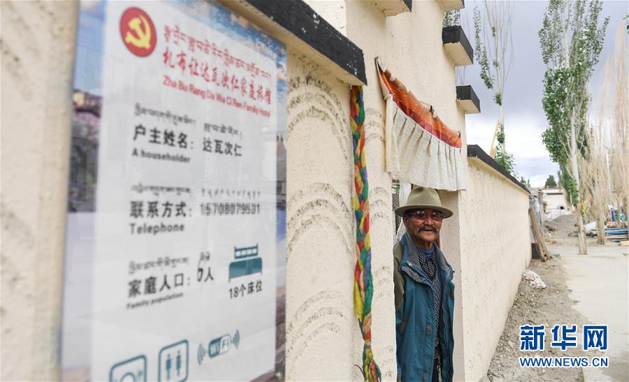 76岁的达瓦次仁在位于西藏阿里地区札达县托林镇札布让村的家门口(7月30日摄)。新华社记者晋美多吉摄