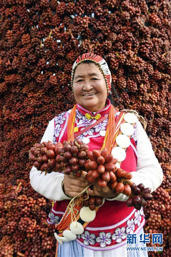 11月2日,云南福贡县鹿马登乡干布村的傈僳族老人妮四菊站在丰收的草果前。新华社记者杨宗友摄